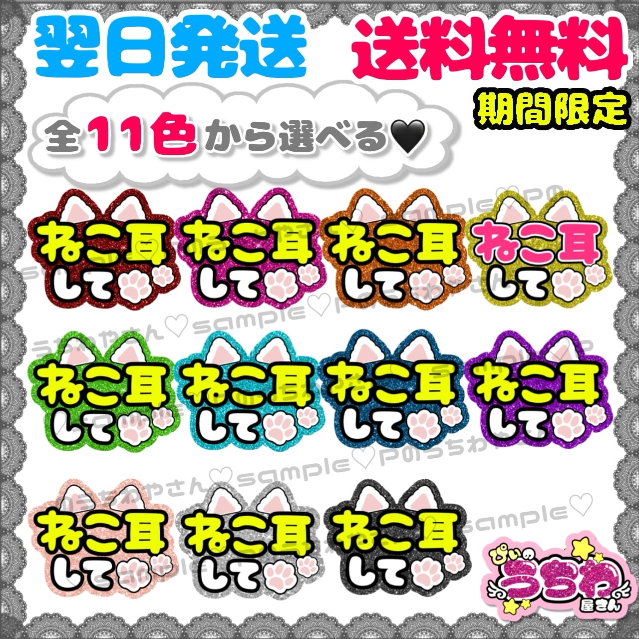 【F007】ねこ耳して/ファンサうちわ/貼るだけ/カット済み/団扇文字/規定内